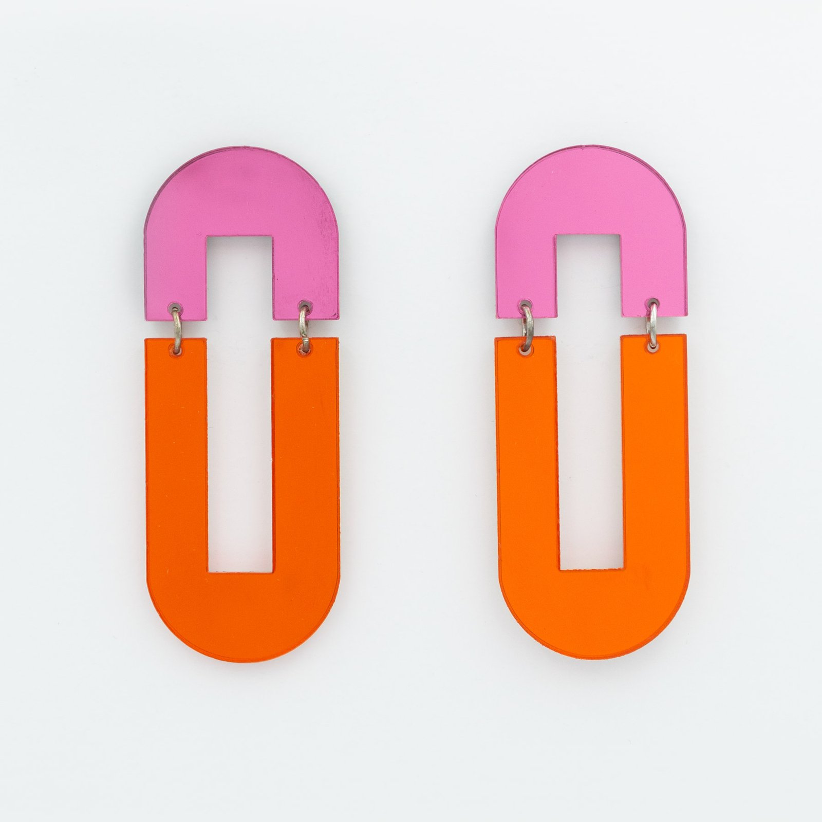 Pendientes de dos piezas geometricas unidas mediante anillas color plata