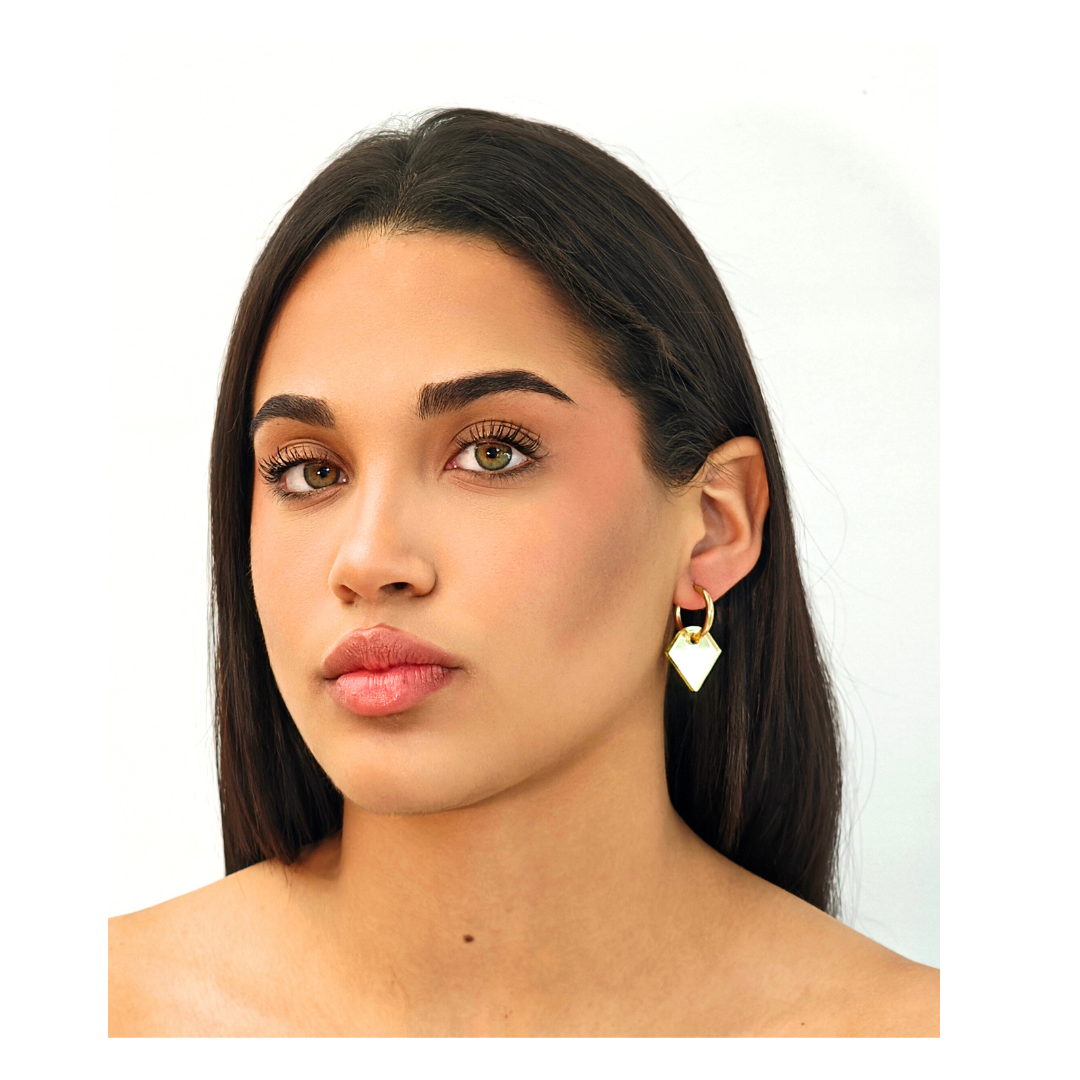 Pendientes en una piezas en forma de diamante y con fornitura de aro de acero inoxidable
