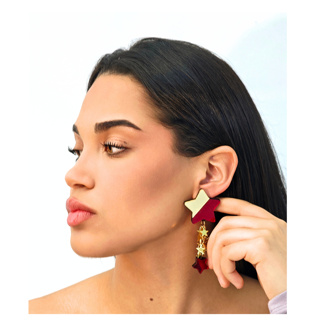 Pendientes en forma de estrella con estrellas de acero inoxidable colgando